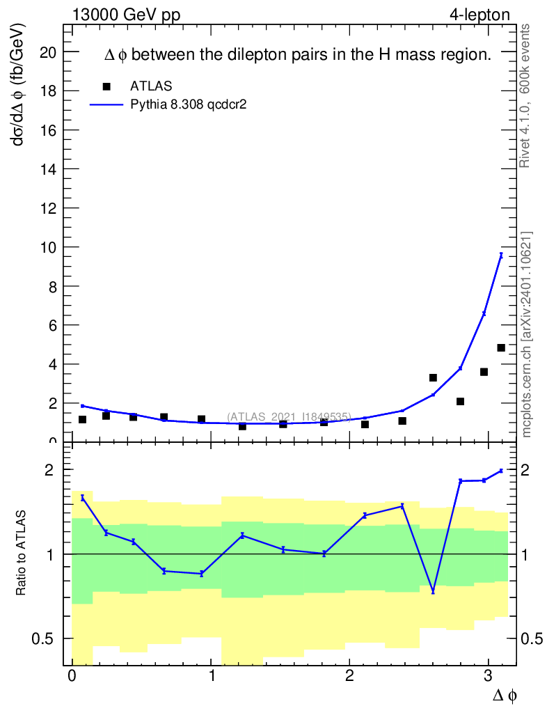 Lines: data, pythia8 8.308 qcdcr2 |