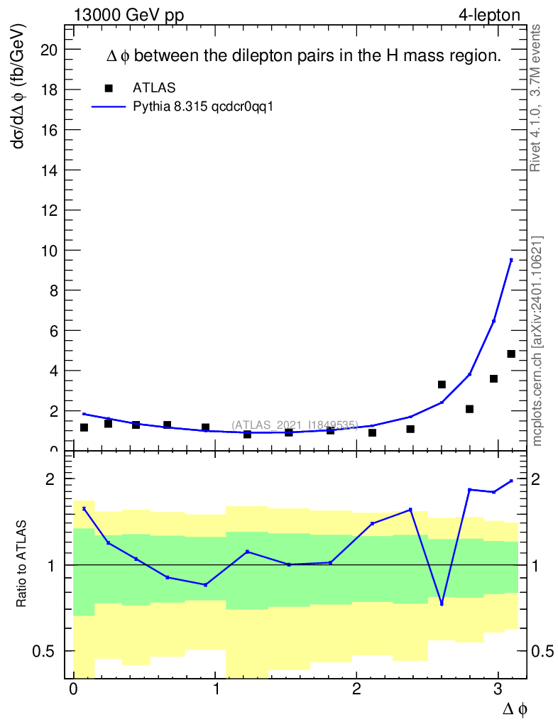 Lines: data, pythia8 8.315 qcdcr0qq1 |
