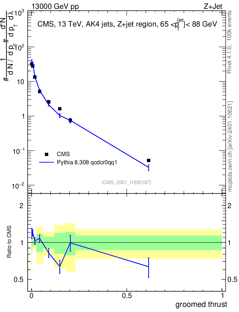Lines: data, pythia8 8.308 qcdcr0qq1 |