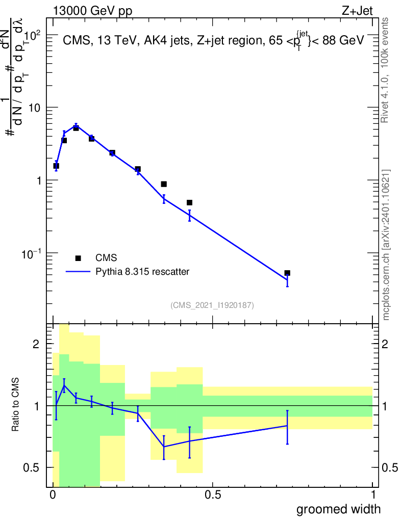 Lines: data, pythia8 8.315 rescatter |