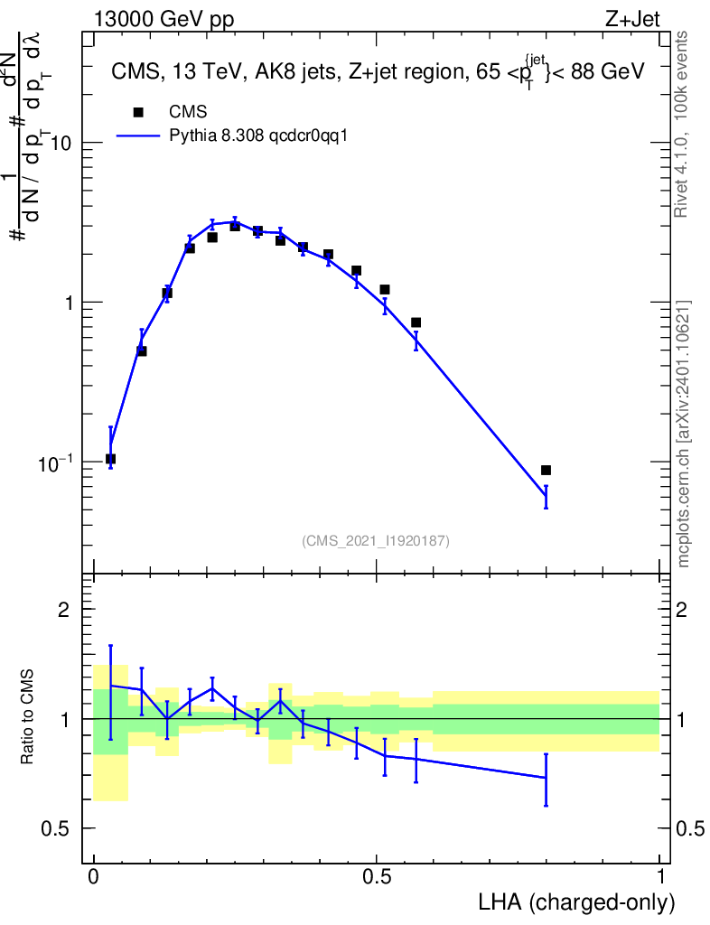 Lines: data, pythia8 8.308 qcdcr0qq1 |