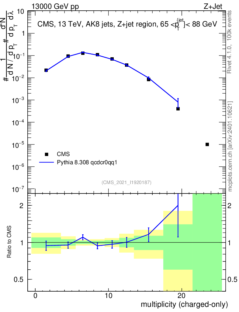 Lines: data, pythia8 8.308 qcdcr0qq1 |