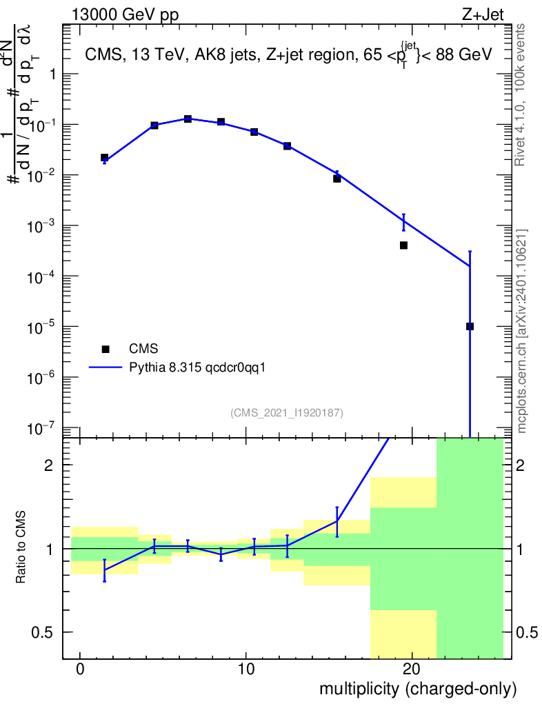 Lines: data, pythia8 8.315 qcdcr0qq1 |