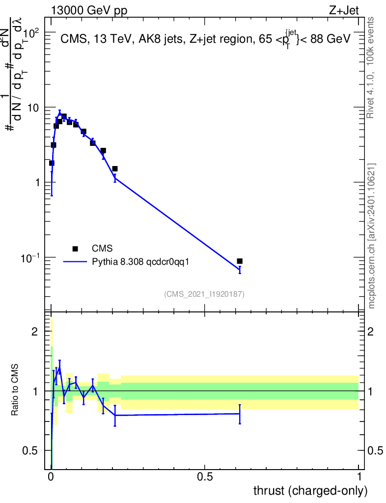 Lines: data, pythia8 8.308 qcdcr0qq1 |
