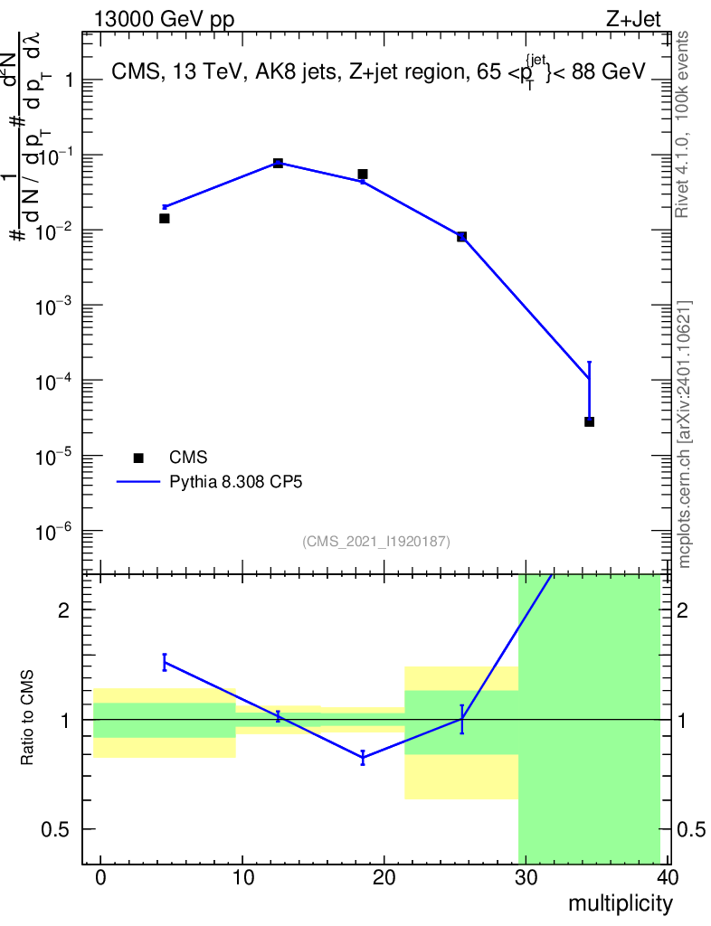 Lines: data, pythia8 8.308 CP5 |