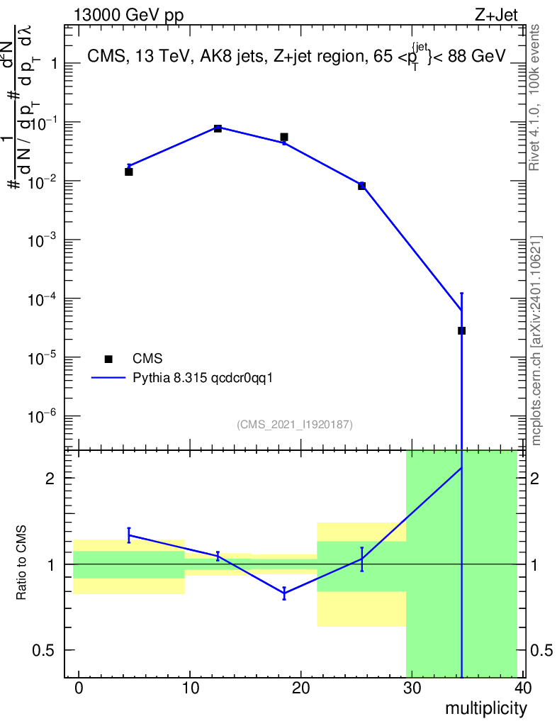 Lines: data, pythia8 8.315 qcdcr0qq1 |
