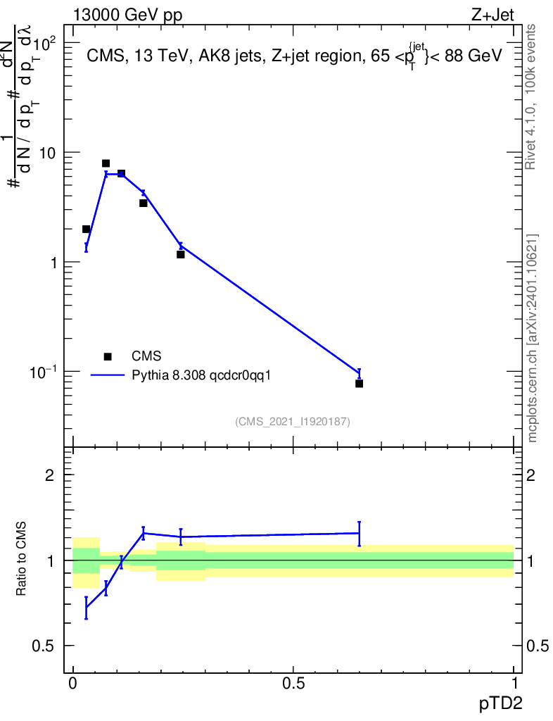 Lines: data, pythia8 8.308 qcdcr0qq1 |