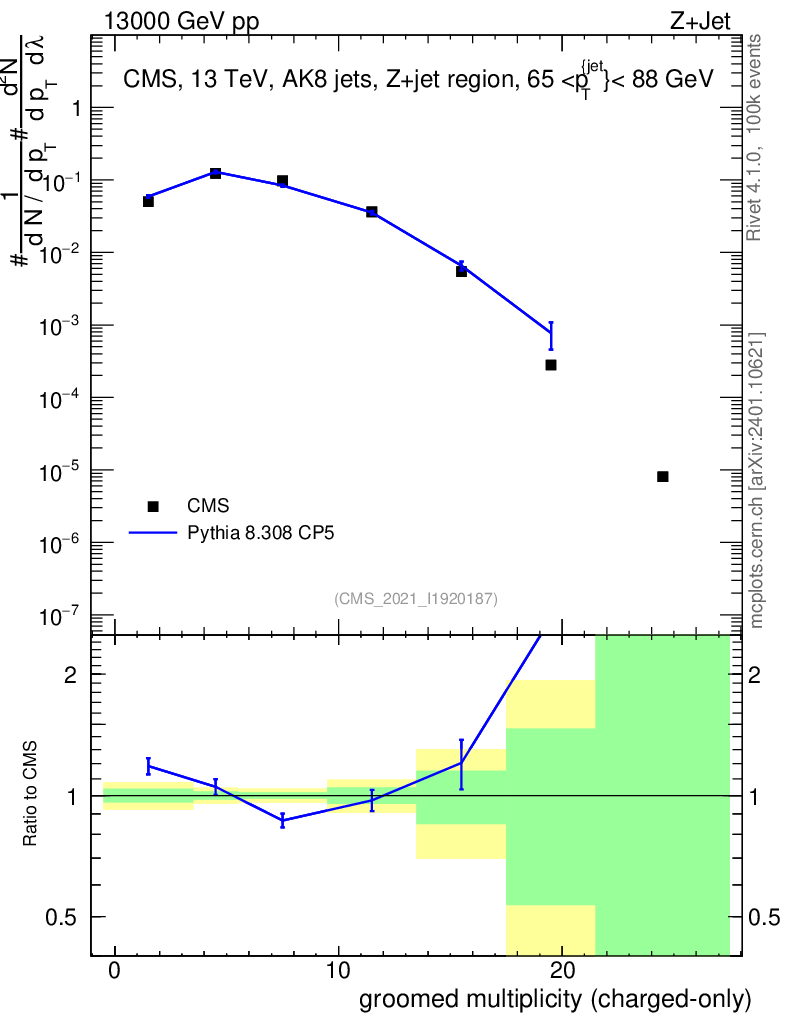 Lines: data, pythia8 8.308 CP5 |