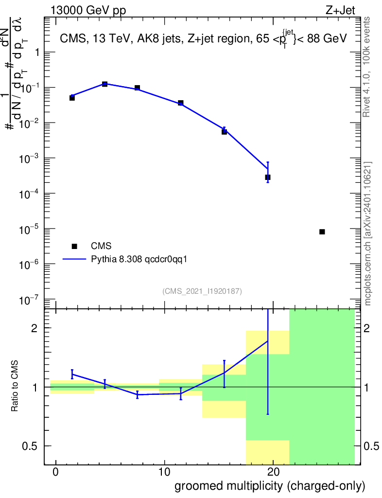 Lines: data, pythia8 8.308 qcdcr0qq1 |