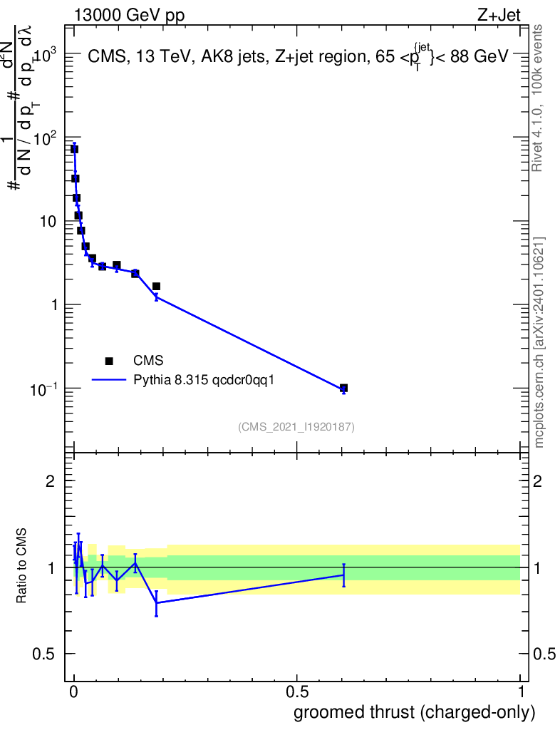Lines: data, pythia8 8.315 qcdcr0qq1 |