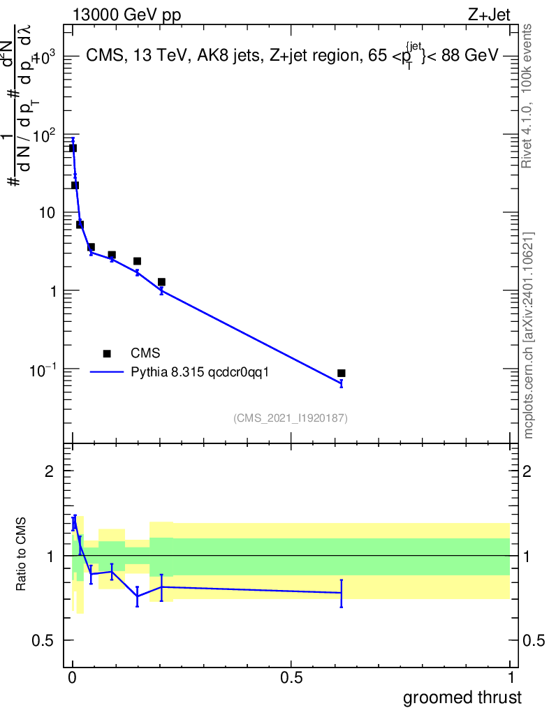 Lines: data, pythia8 8.315 qcdcr0qq1 |