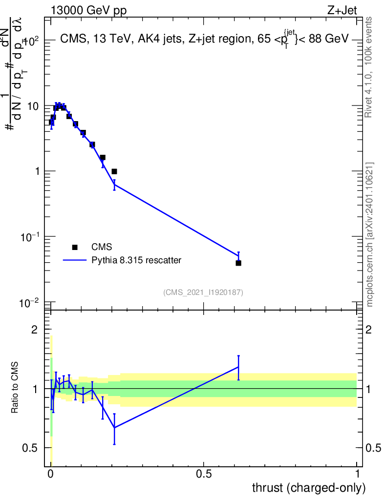 Lines: data, pythia8 8.315 rescatter |