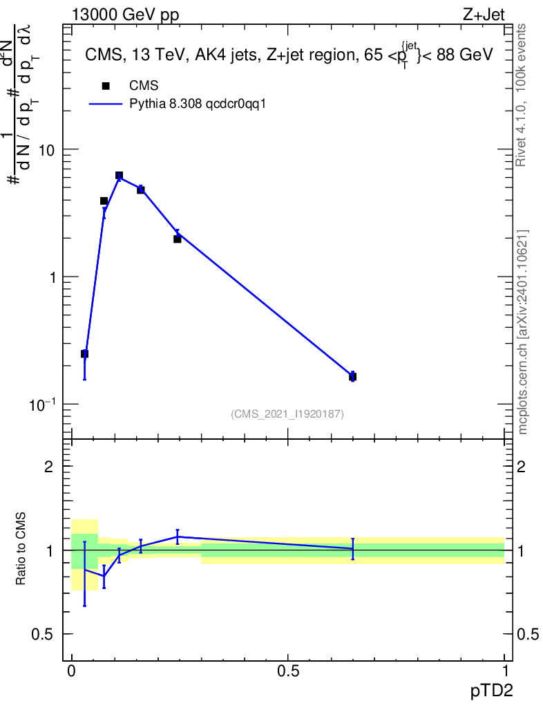 Lines: data, pythia8 8.308 qcdcr0qq1 |