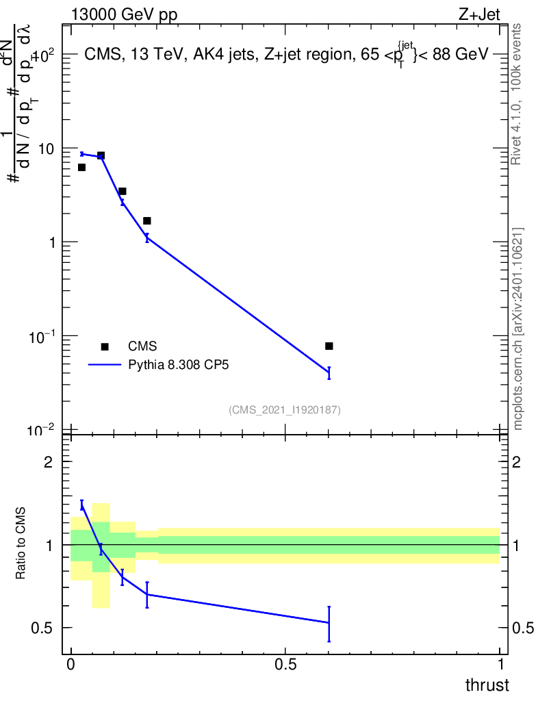 Lines: data, pythia8 8.308 CP5 |