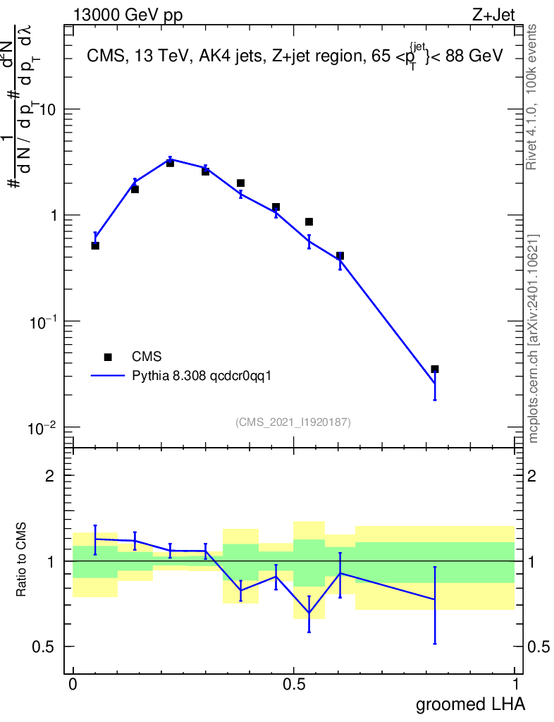 Lines: data, pythia8 8.308 qcdcr0qq1 |