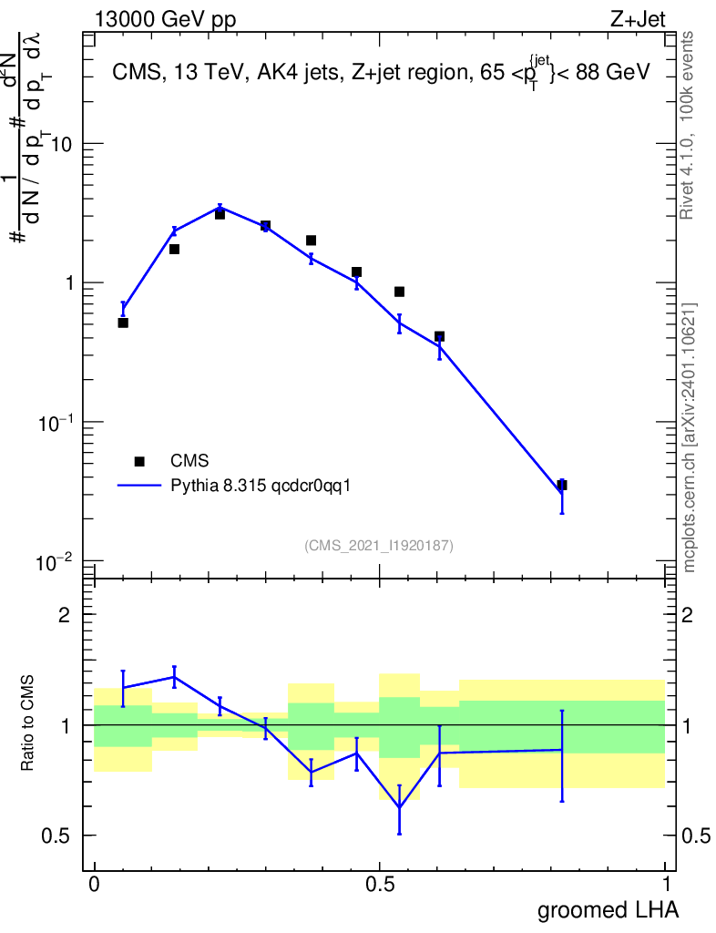 Lines: data, pythia8 8.315 qcdcr0qq1 |