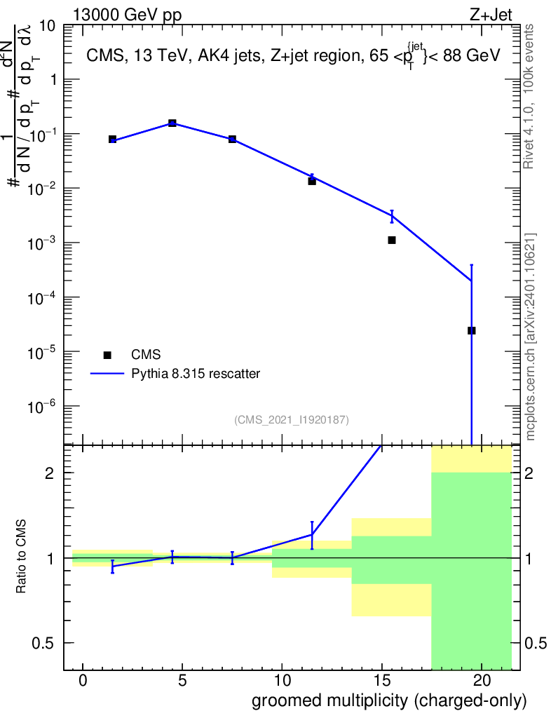 Lines: data, pythia8 8.315 rescatter |