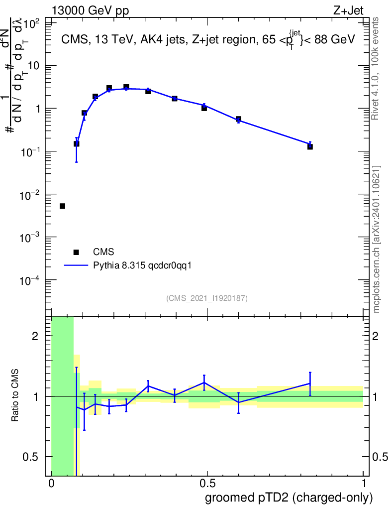 Lines: data, pythia8 8.315 qcdcr0qq1 |