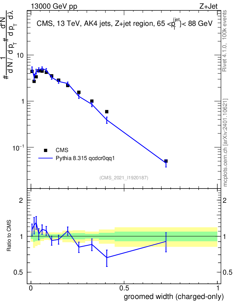 Lines: data, pythia8 8.315 qcdcr0qq1 |