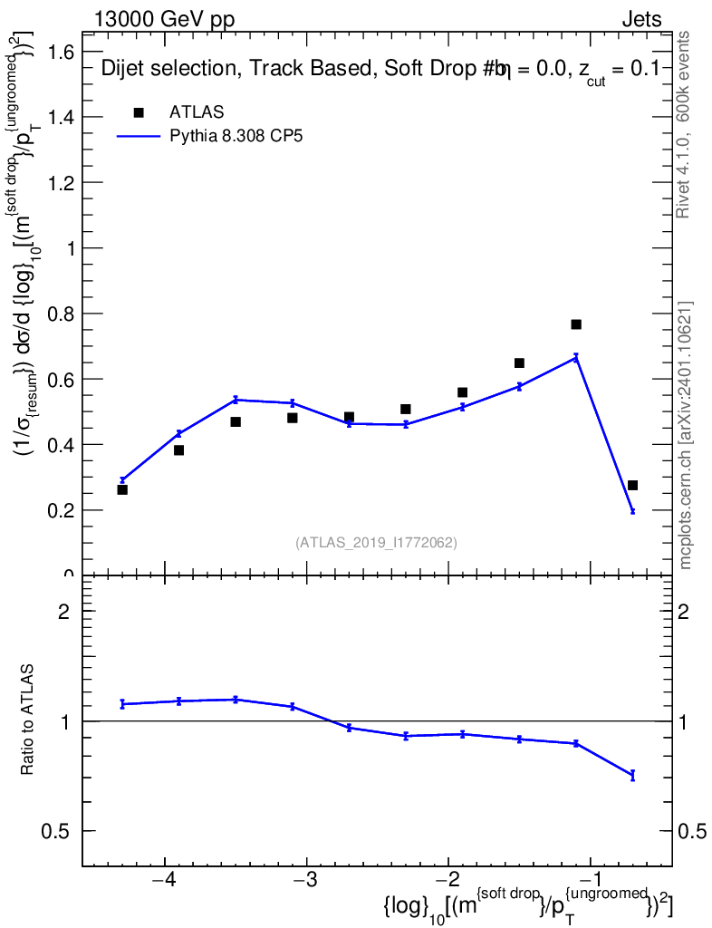 Lines: data, pythia8 8.308 CP5 |