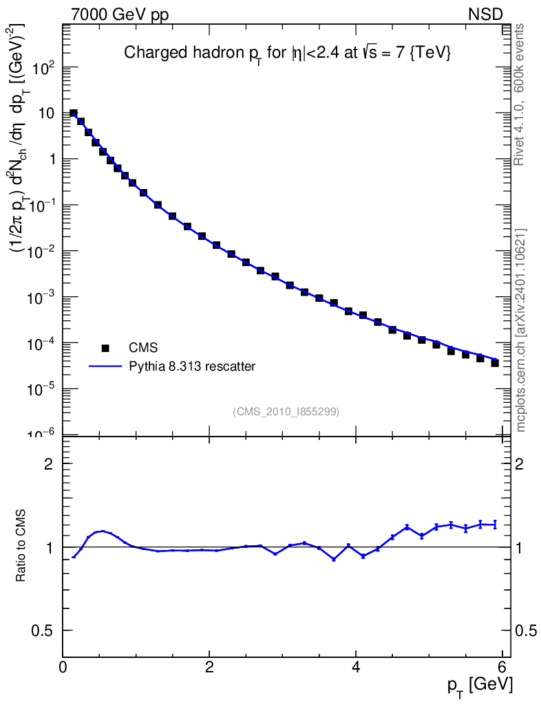Lines: data, pythia8 8.313 rescatter |