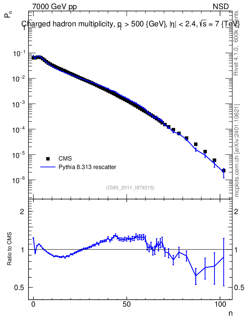 Lines: data, pythia8 8.313 rescatter |