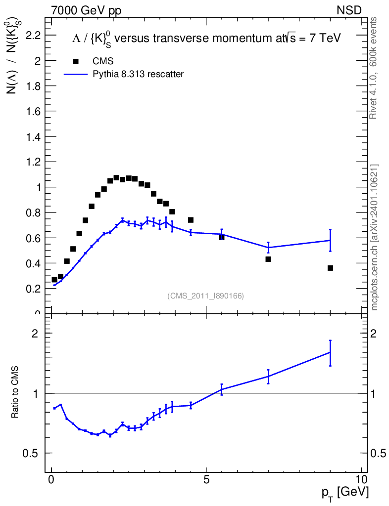 Lines: data, pythia8 8.313 rescatter |