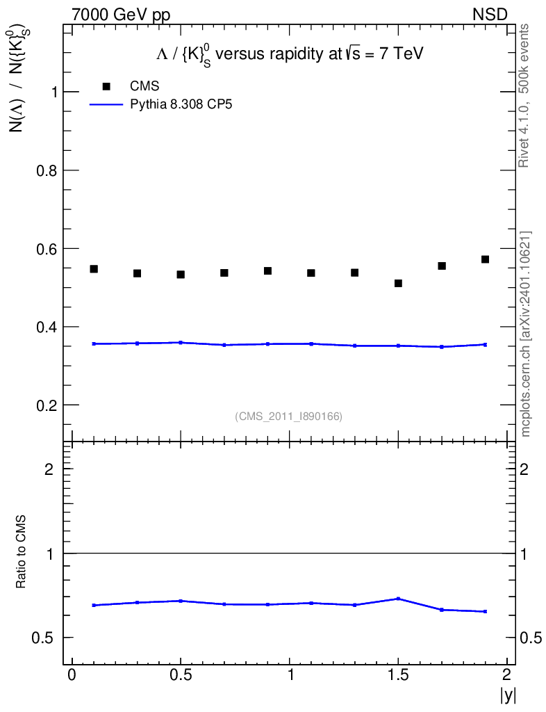 Observable: Λ/K0S vs |y|