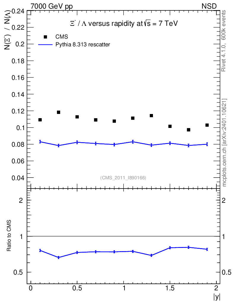 Lines: data, pythia8 8.313 rescatter |