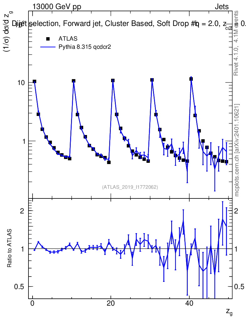 Lines: data, pythia8 8.315 qcdcr2 |