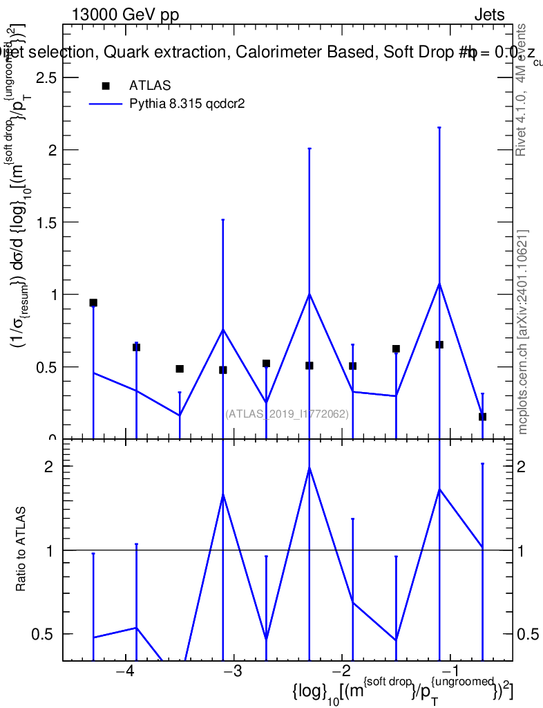 Lines: data, pythia8 8.315 qcdcr2 |