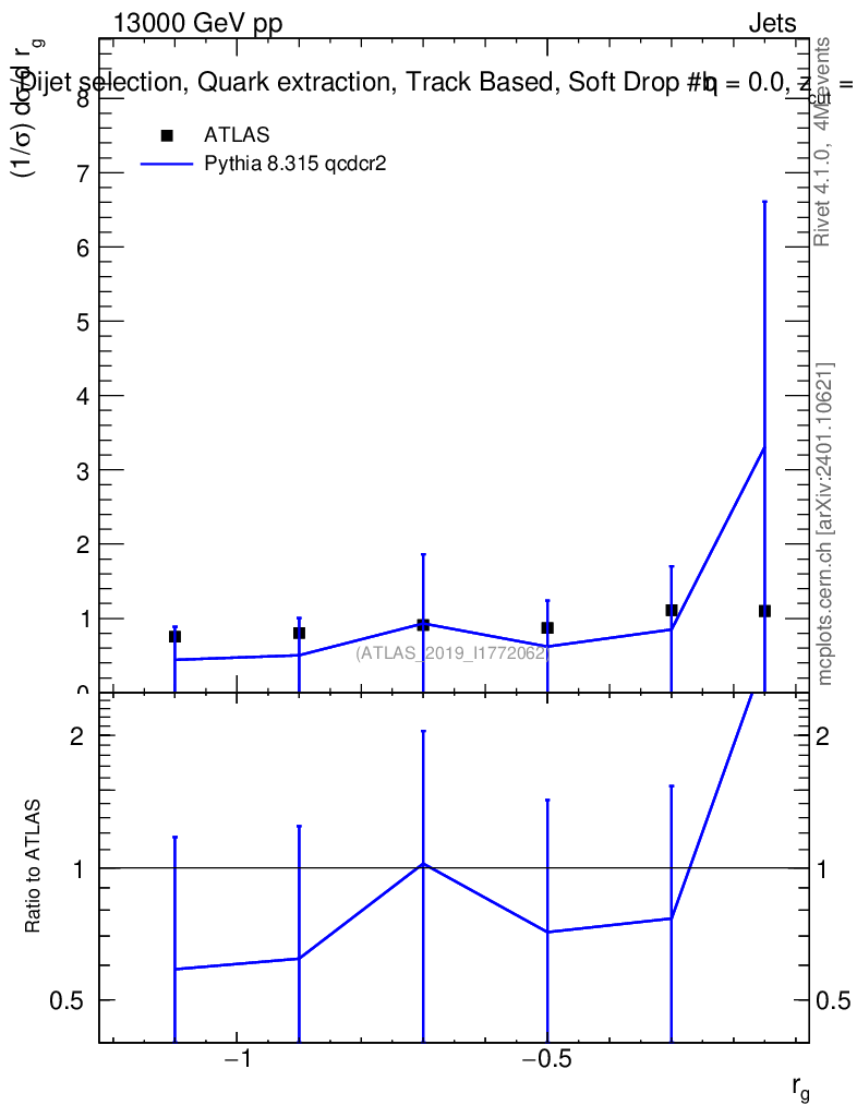 Lines: data, pythia8 8.315 qcdcr2 |