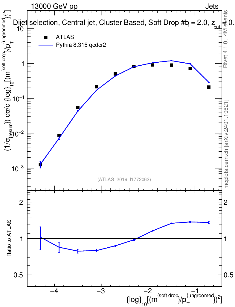 Lines: data, pythia8 8.315 qcdcr2 |