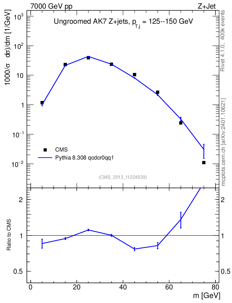 Lines: data, pythia8 8.308 qcdcr0qq1 |