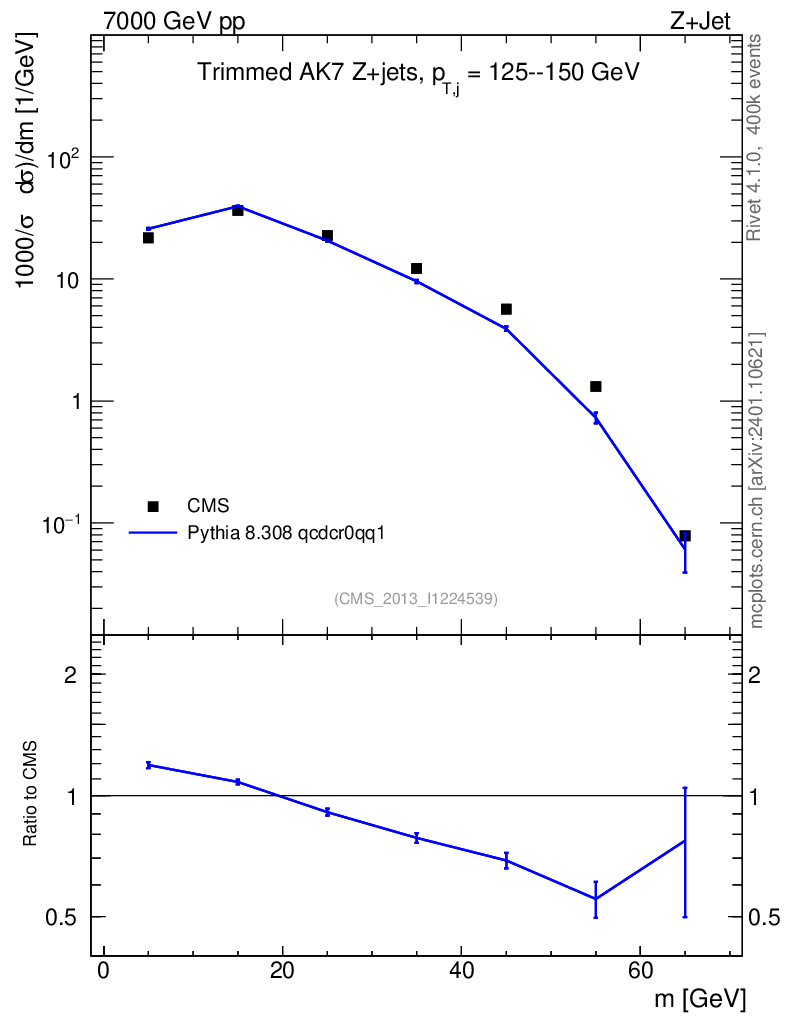 Lines: data, pythia8 8.308 qcdcr0qq1 |