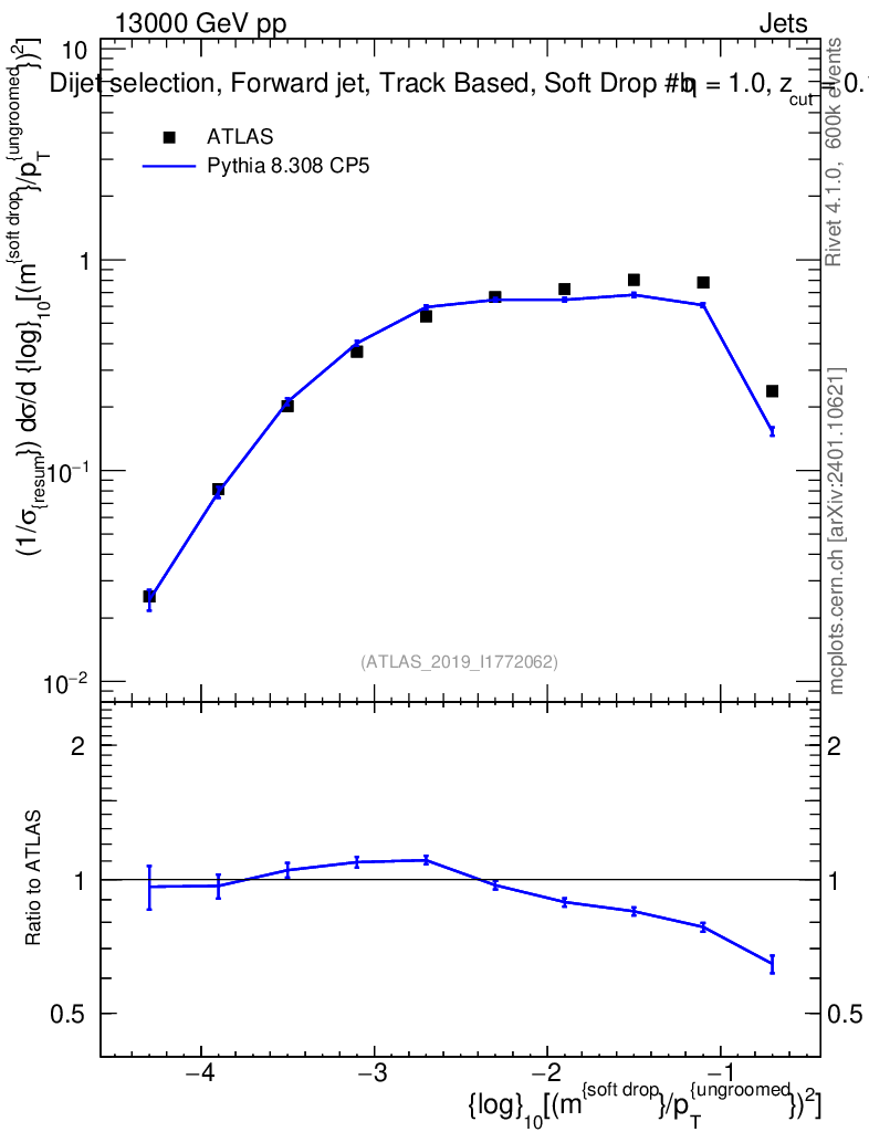 Lines: data, pythia8 8.308 CP5 |