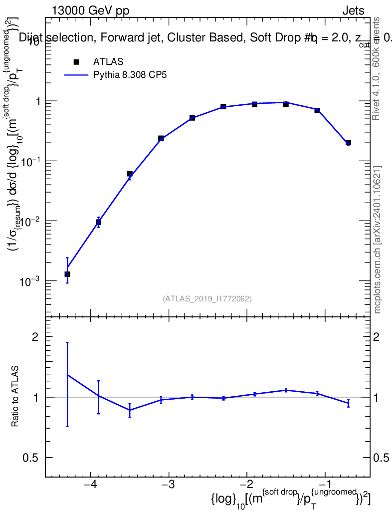 Lines: data, pythia8 8.308 CP5 |