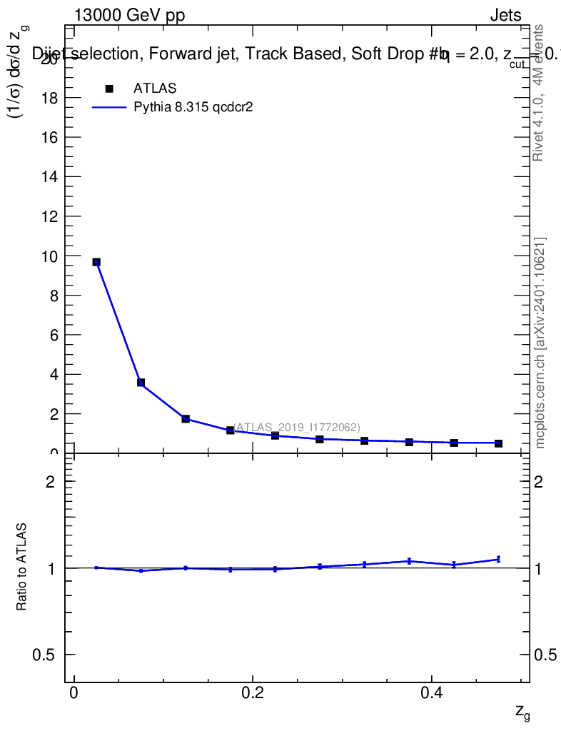 Lines: data, pythia8 8.315 qcdcr2 |