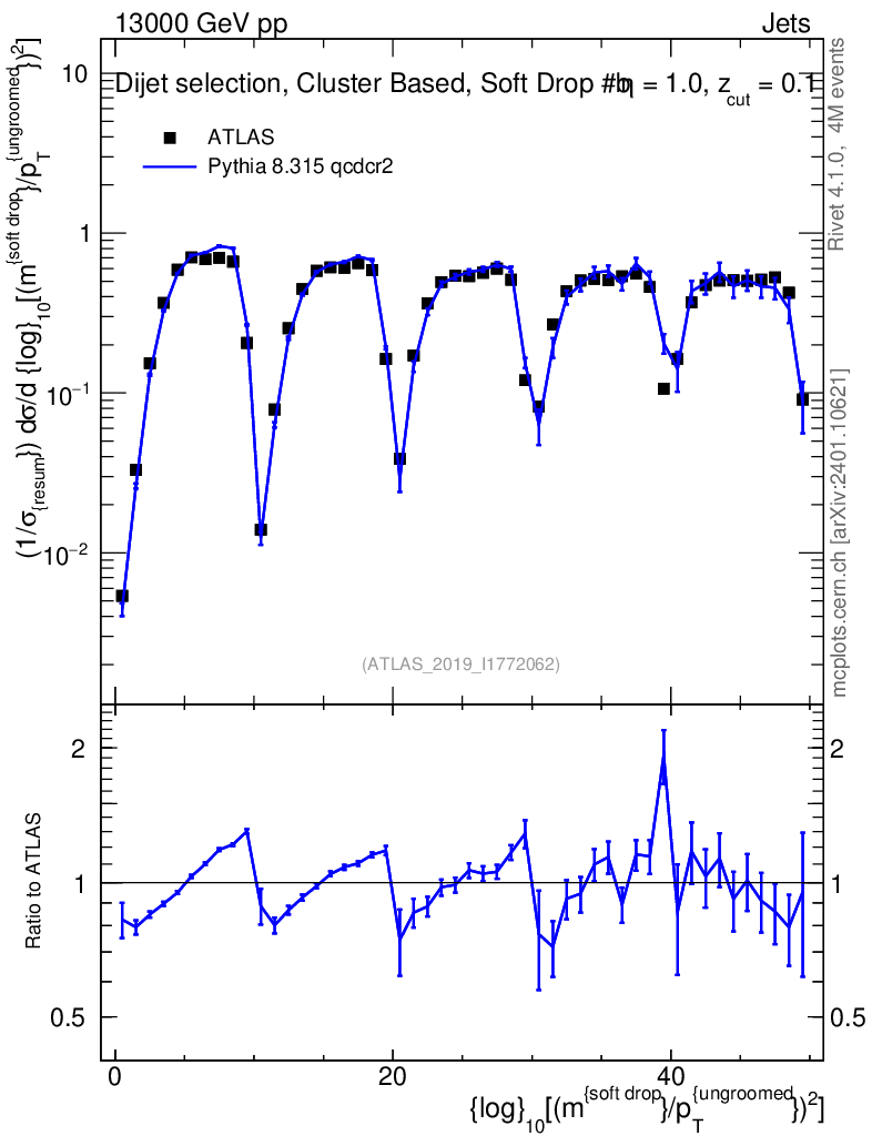 Lines: data, pythia8 8.315 qcdcr2 |