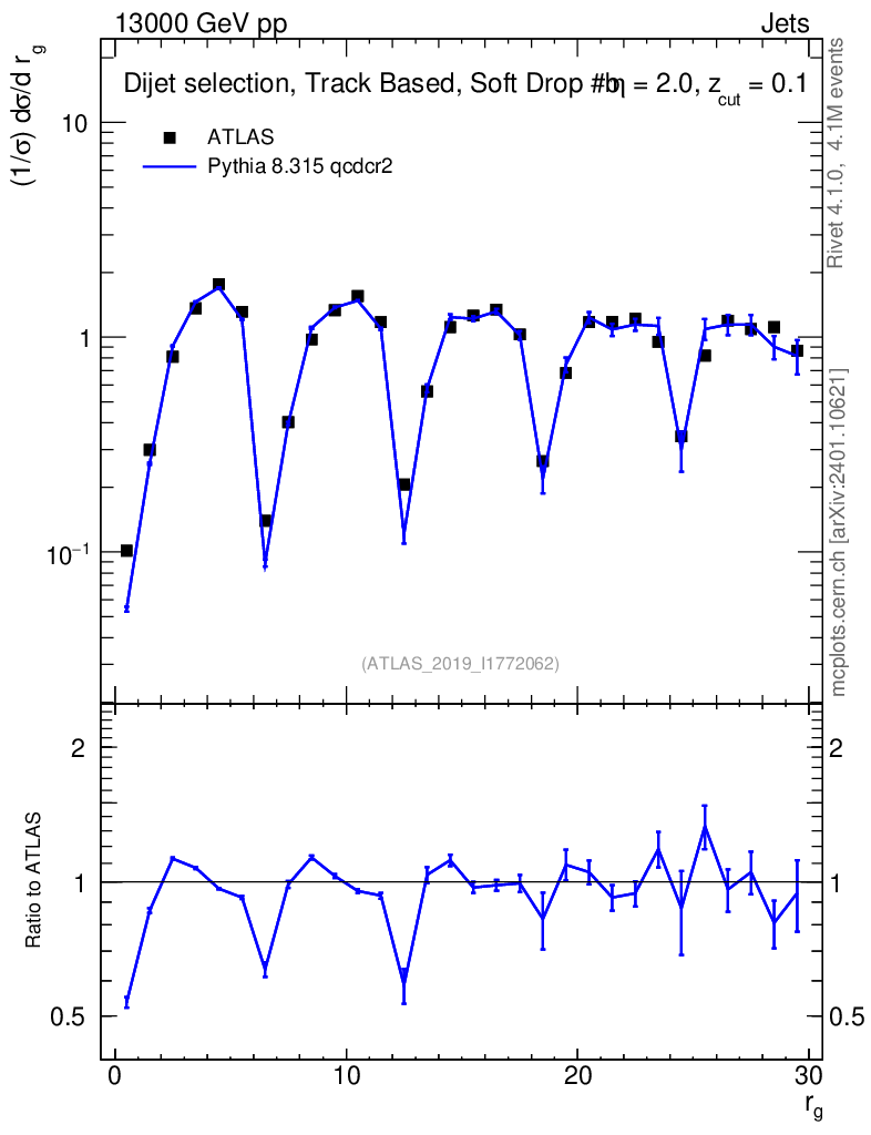 Lines: data, pythia8 8.315 qcdcr2 |