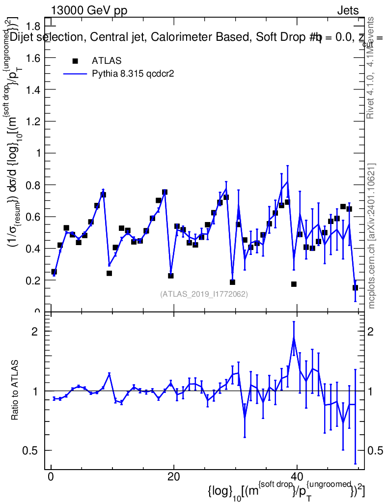 Lines: data, pythia8 8.315 qcdcr2 |