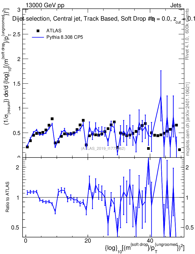 Lines: data, pythia8 8.308 CP5 |