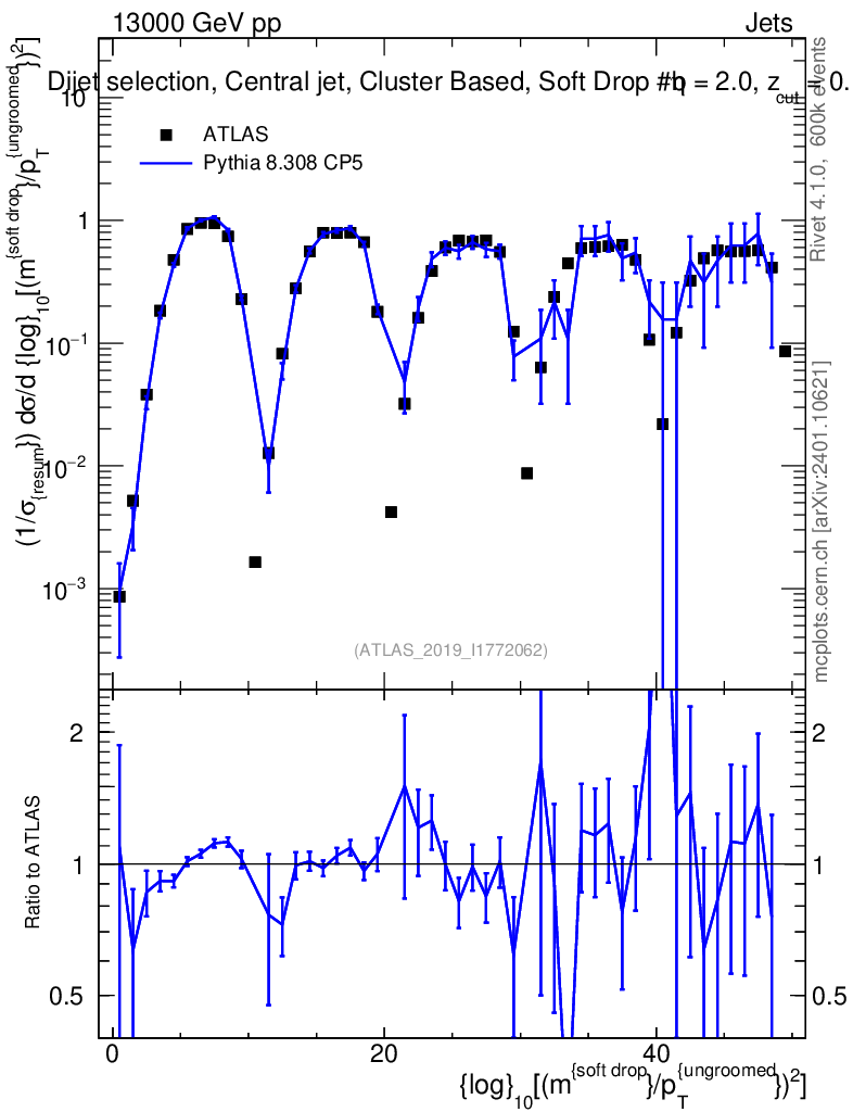 Lines: data, pythia8 8.308 CP5 |