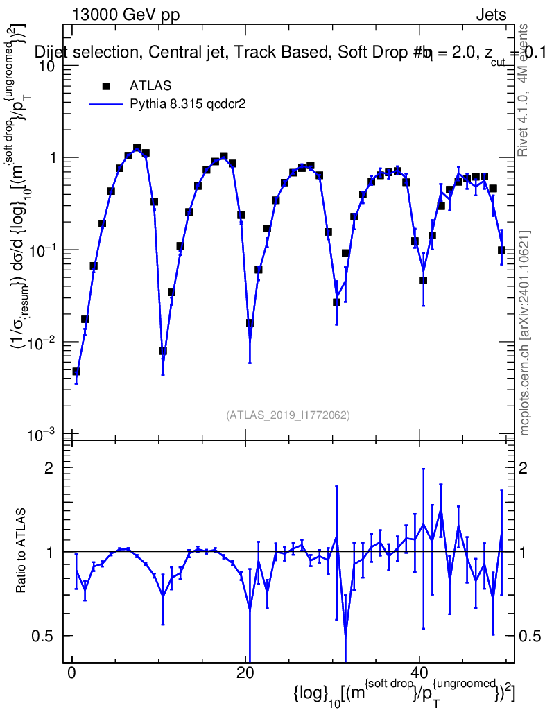 Lines: data, pythia8 8.315 qcdcr2 |