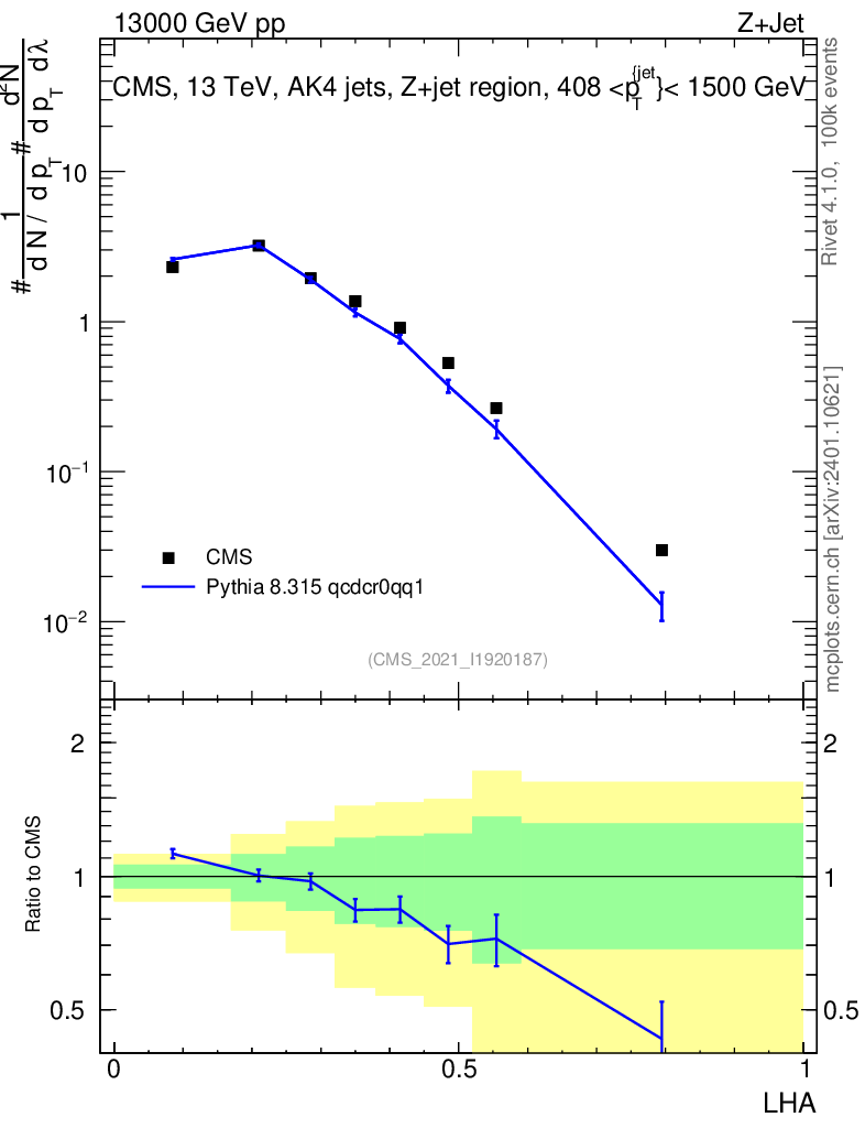 Lines: data, pythia8 8.315 qcdcr0qq1 |