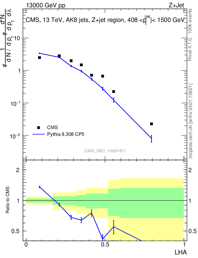 Lines: data, pythia8 8.308 CP5 |