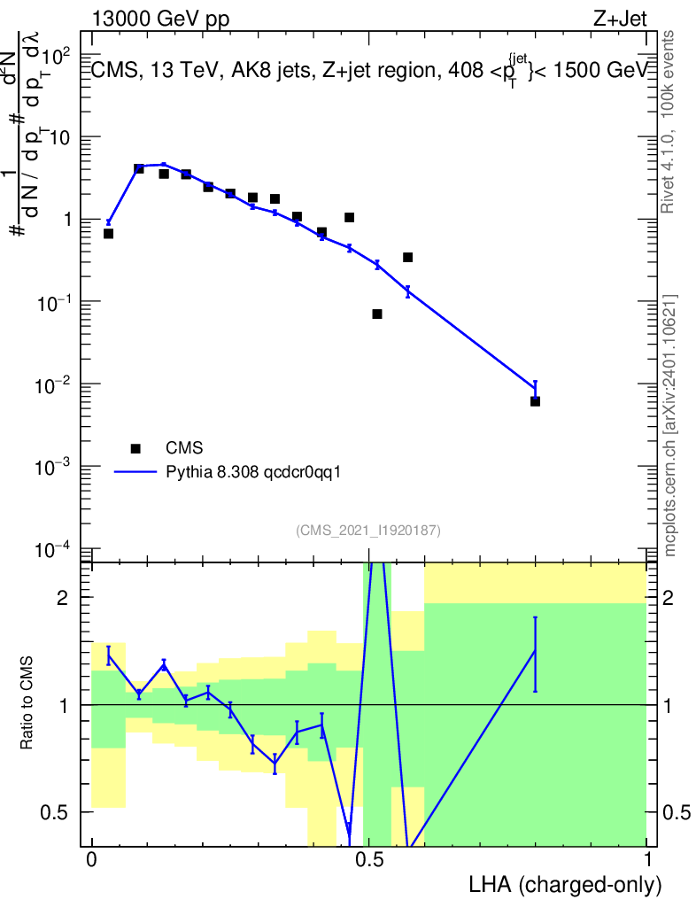 Lines: data, pythia8 8.308 qcdcr0qq1 |