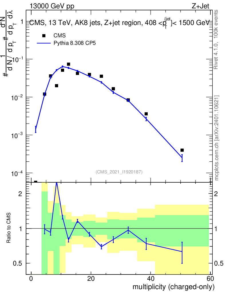 Lines: data, pythia8 8.308 CP5 |