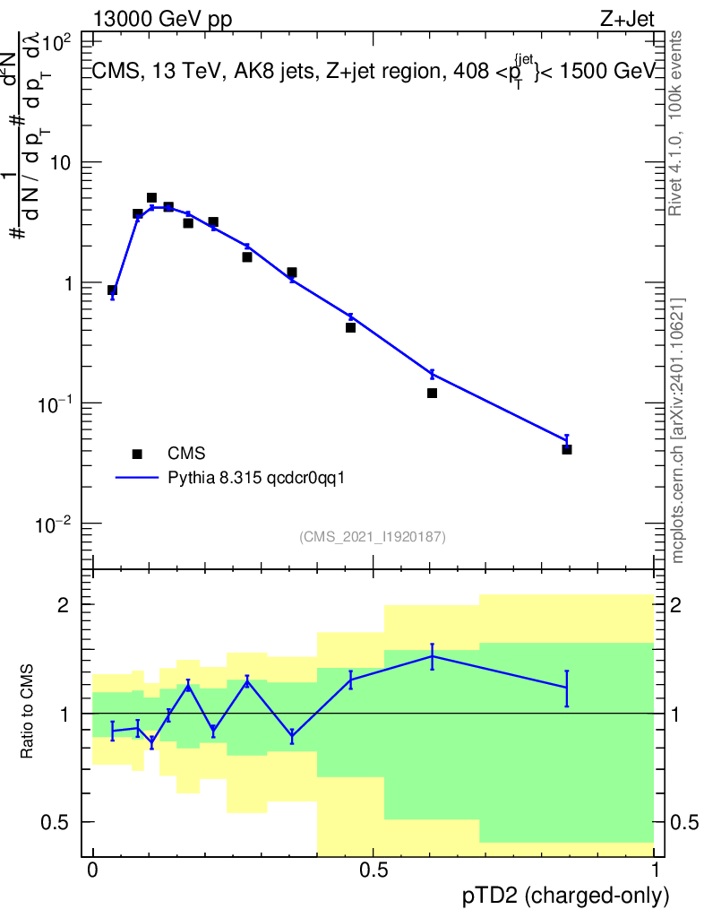 Lines: data, pythia8 8.315 qcdcr0qq1 |