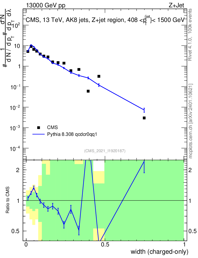 Lines: data, pythia8 8.308 qcdcr0qq1 |